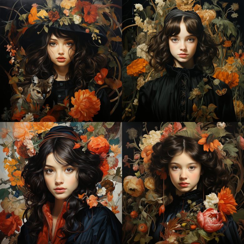 生成したプロンプト(呪文)も一緒にご紹介しますのでぜひご覧ください。
