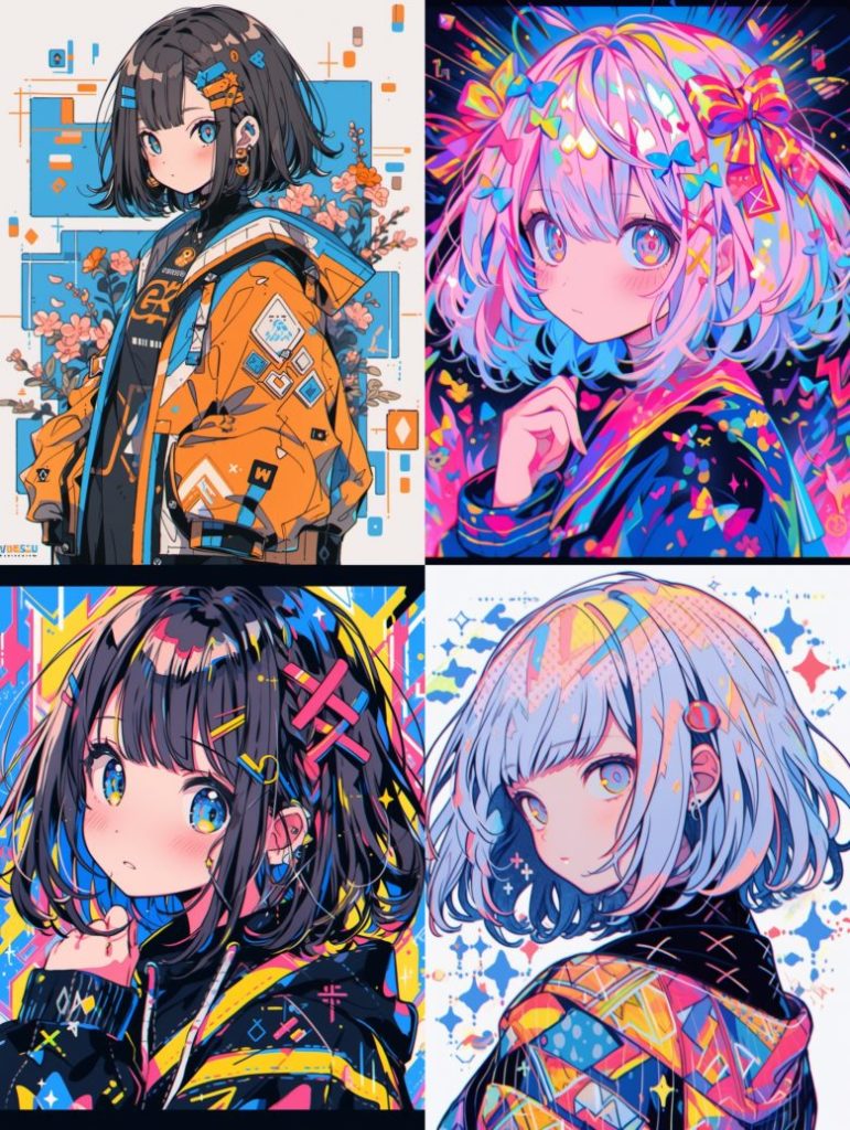上の画像は女の子のイラストで帽子を除外するというプロンプトで生成されたイラストです。