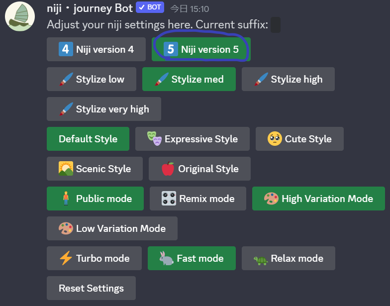 2.以下の画像ようなメッセージが返ってくるので、枠の中の先ほど紹介した5つのスタイルの中から自分の生成したいスタイルを選択すれば設定完了です。